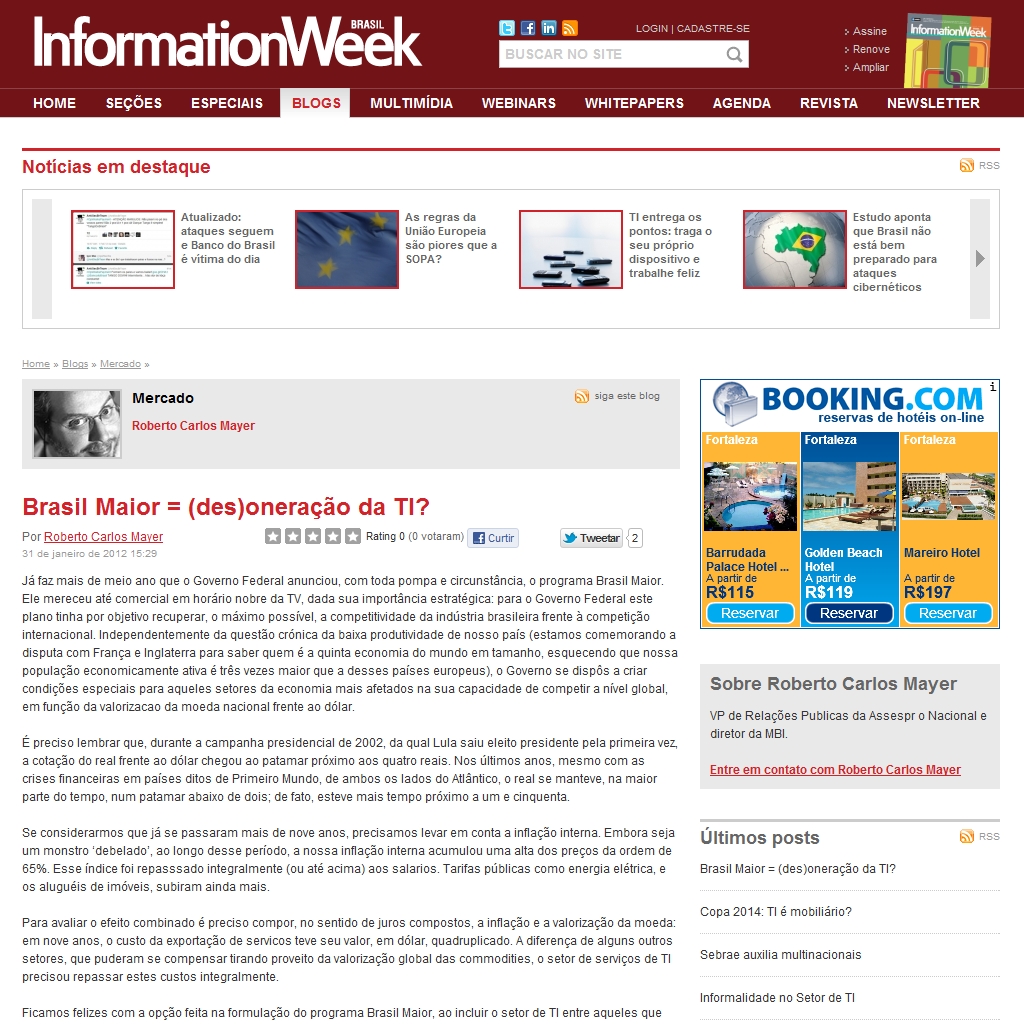 2012/01/31 - Information Week - Brasil Maior = (des)oneração da TI?