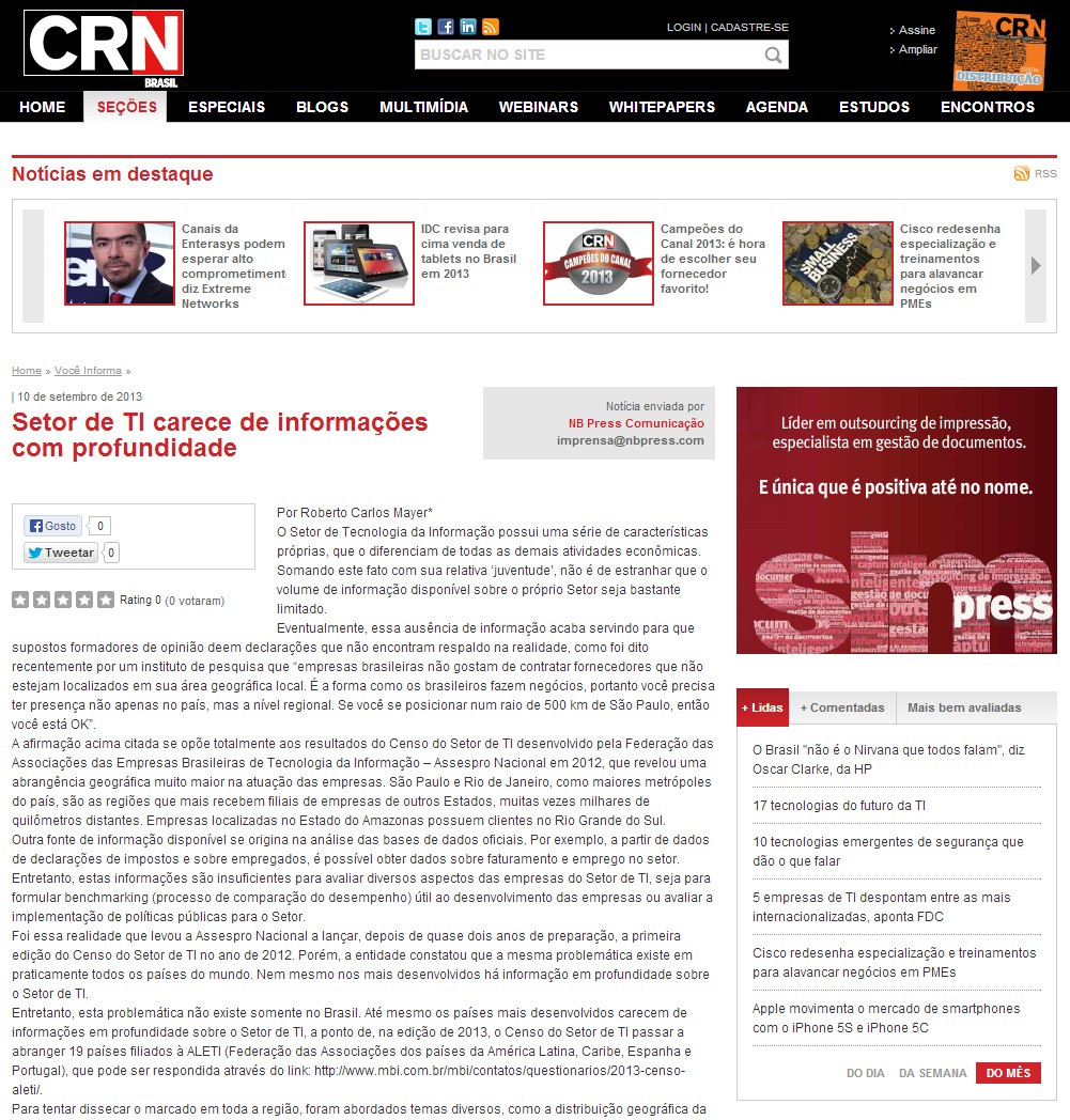 2013/09/10 - CRN - Setor de TI carece de informações com profundidade
