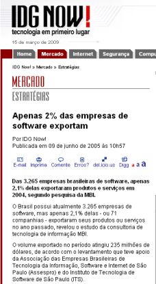 Das 3.265 empresas brasileiras de software, apenas 2,1% delas exportaram produtos e serviços em 2004, segundo pesquisa da MBI.