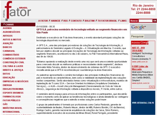 GPTI S.A. patrocina seminário de tecnologia voltado ao segmento financeiro em São Paulo