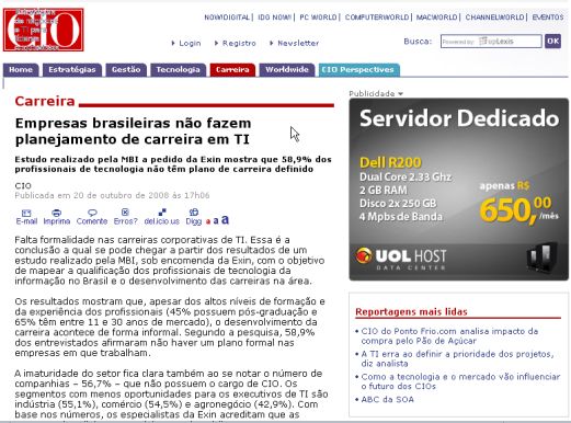 Conteúdo republicado a partir de http://cio.uol.com.br//carreira/2008/10/20/empresas-brasileiras-nao-fazem-planejamento-de-carreira-em-ti/
