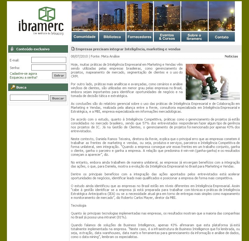 2010/07/08 - Ibramerc - Empresas precisam integrar Inteligência, marketing e vendas