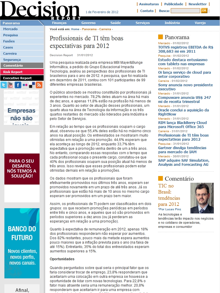 2012/01/31 - Decision Report - Profissionais de TI tem boas expectativas para 2012