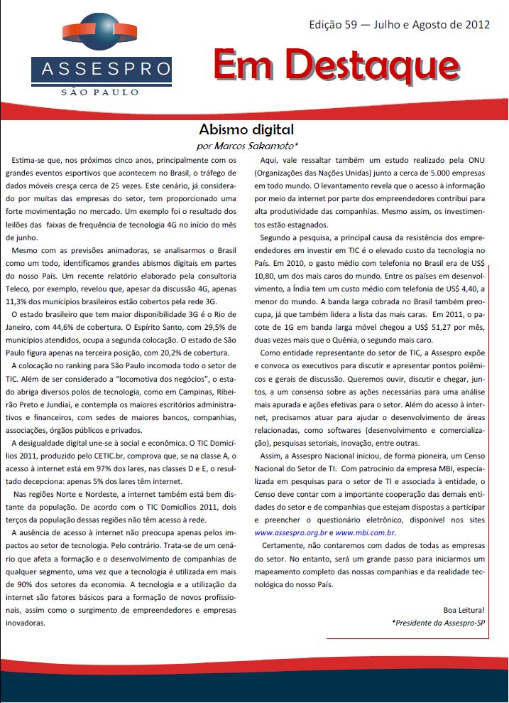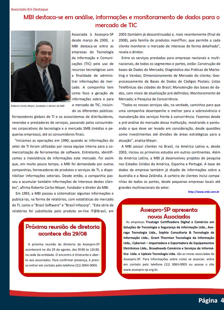 2012/07 - Assespro SP - Boletim #59 - MBI destaca-se em análise, informações e monitoramento de dados para o mercado de TIC