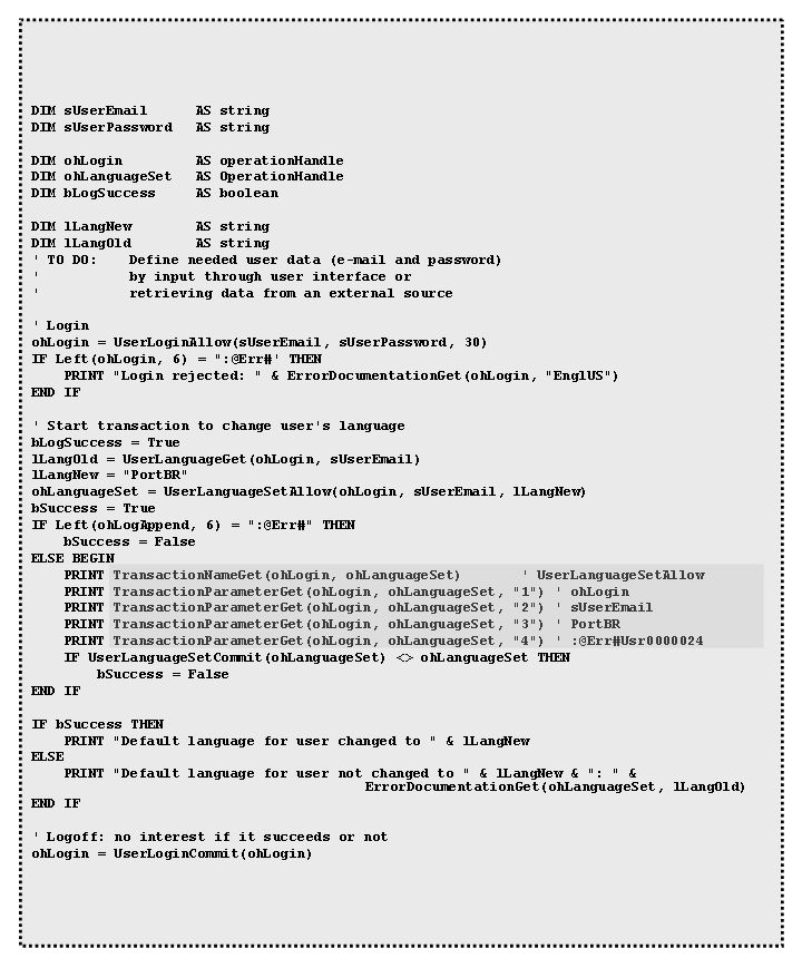 As soon as the transaction has started, it is possible to retrieve its name and parameter values through calls to the 'TransactionNameGet' and 'TransactionParameterGet' APIs. These calls need a valid login operation handle (to identify who is retrieving the information) plus the operation handle of the pending transaction as parameters.