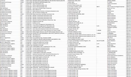 As listas desta categoria, assim como todas nossas listas (e suas respectivas amostras, disponibilizadas sem custo), são disponibilizadas como arquivos texto (.txt), com os campos (ou colunas) separados por tabulações - clique aqui para instruções detalhadas sobre este tipo de arquivos no Excel.